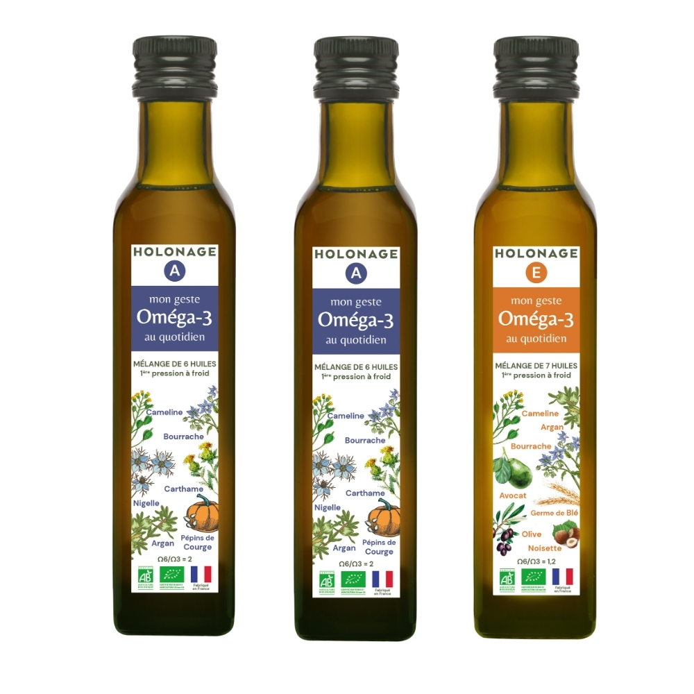 Une cuillère à soupe d'Holonage E apporte la quantité d'oméga-3 végétal nécessaire au quotidien. Les oméga-3 sont directement impliqués dans les réponses anti-inflammatoires de notre organisme et permettent de lutter contre les inflammations chroniques.